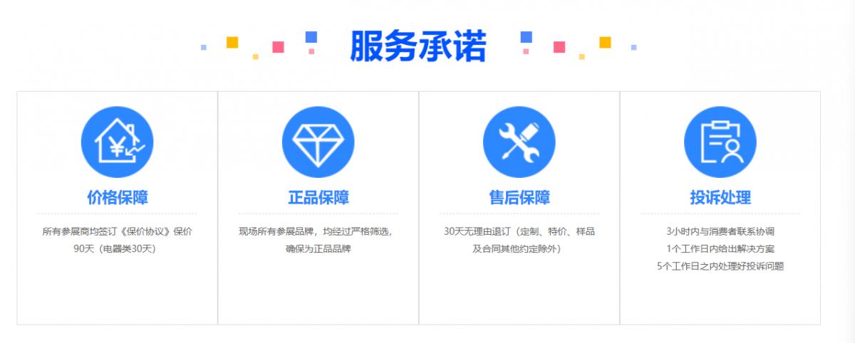 3、家博会售后保障: 自下订之日起60天内,如不满意可协商退订