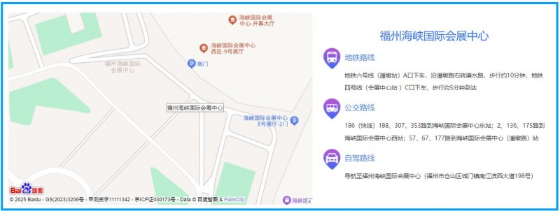 自驾路线:导航至福州海峡国际会展中心(福州市仓山区城门镇南江滨西大道198号)。