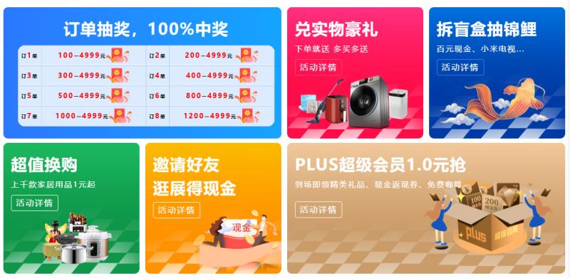 拆盲盒抽锦鲤:持有《蓝装家博会专用订单》任意金额,即可参与此项活动,现金和好物件随意抽。
