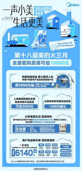 巡展现场美的推出多重重磅优惠,切实让利消费者:全屋套购至高省10000元;上美团囤券购买全屋智能,可享至高3000元补贴;全屋智能家电套购,赠至高1499元豪礼;购买美的产品加任意智能产品满3999元就有机会抽大疆无人机,100%中奖;用户将体验内容分享至抖音、小红书等平台,还可参与美的咖啡机、电水壶等礼品兑换。