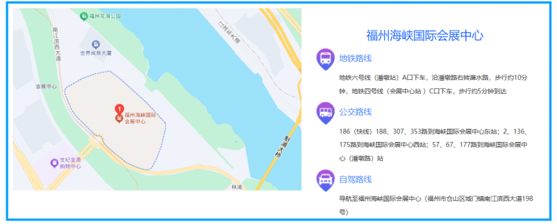186(快线)188、307、353路到海峡国际会展中心东站;2、136、175路到海峡国际会展中心西站;57、67、177路到海峡国际会展中心(潘墩路)站